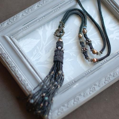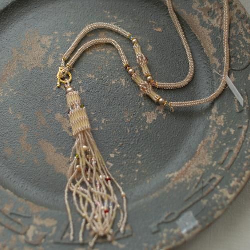 着けた方の動きに合わせてフリンジがしゃらしゃらと揺れるネックレス。
