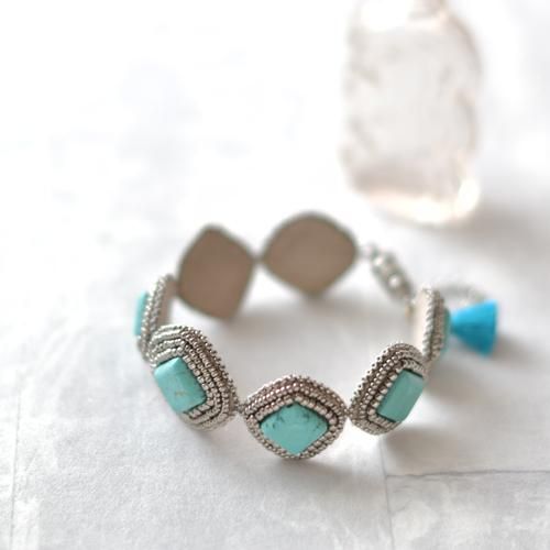 マグネサイトのスクエアビーズに、シルバーカラーのシードビーズを繊細に刺繍。