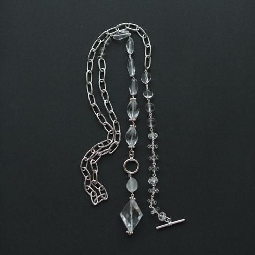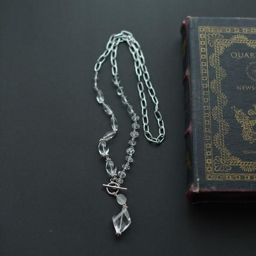 グラスの中に注がれる水、しとしとと美しく降り注ぐ雨、透明感ある「水滴」をイメージしネックレスとしてデザイン。15年前に仕入れた天然水晶、透明感がありカットも美しく多くキットを作ることができなかったのでずっと引き出しの中で出番を待っていた素材です。急がずゆっくりこつこつと。自分の大切な時間をハンドメイドでお楽しみください。