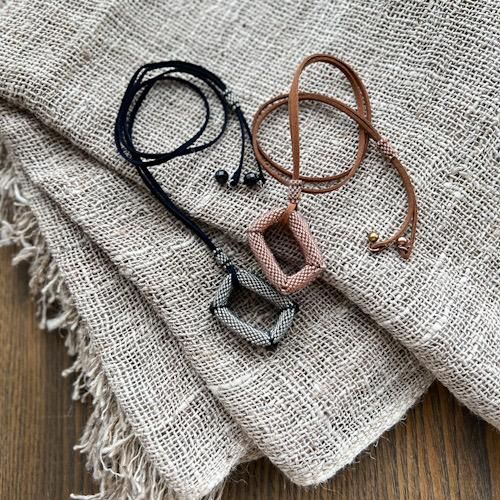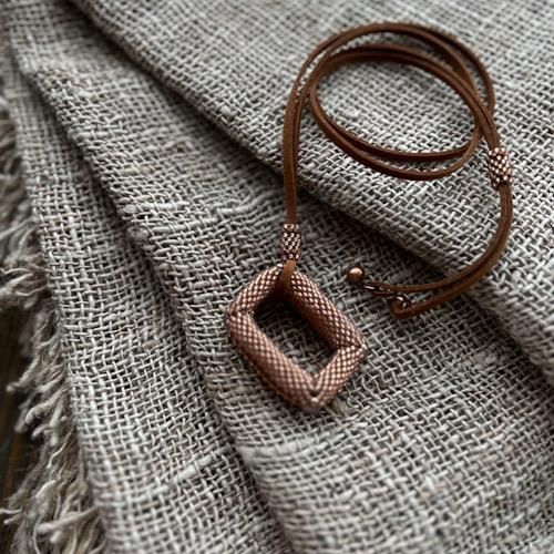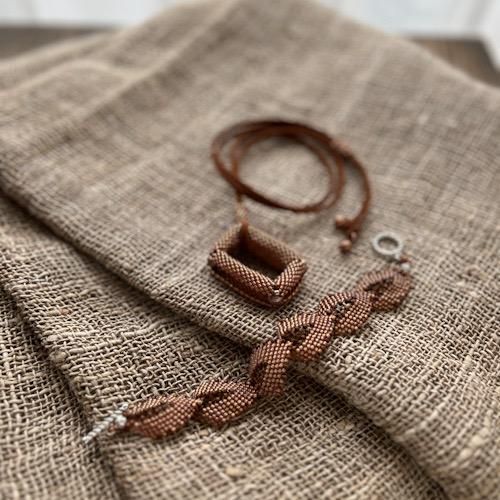 ペヨーテステッチで編み上げる「スクエア」型ネックレス。長さの調整もできるのでおしゃれの幅も広がるかもしれませんね