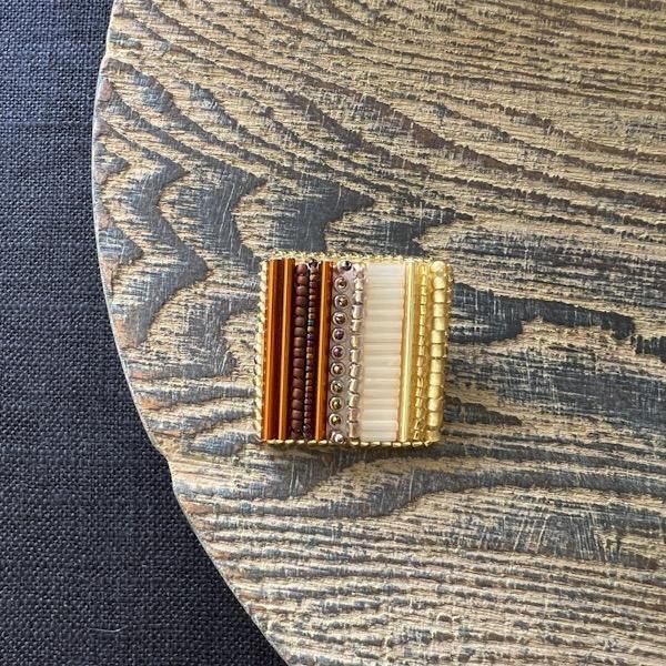 針と糸を使ってフエルトへビーズを縫い留めて仕上げる「ビーズ刺繍」の基本ステッチがぎゅっと詰まった技法で作るブローチのご紹介です。ヴォーグオンラインレッスンの課題にもなったこちらのブローチはシンプルなスレンダービューグルを使った基本刺繍のステッチを詰め込みました