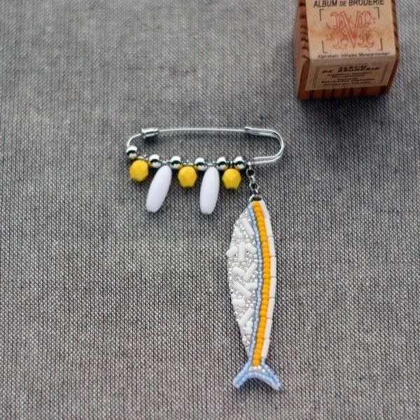 黄色とブルーを指し色に入れたブローチはシンプルだけどビーズ刺繍の基本ステッチが盛り込まれた初心者向けのキットです。ただしピンワークが入るのでピンワークをしたことがない方にはちょっぴりハードルが上がりますがピンワークも練習ですね。